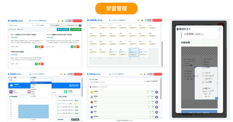 AIが個別の学習計画を提案し、教材管理・タスク管理・理解度確認まで対応。生徒一人ひとりに最適化された学習環境を提供します。