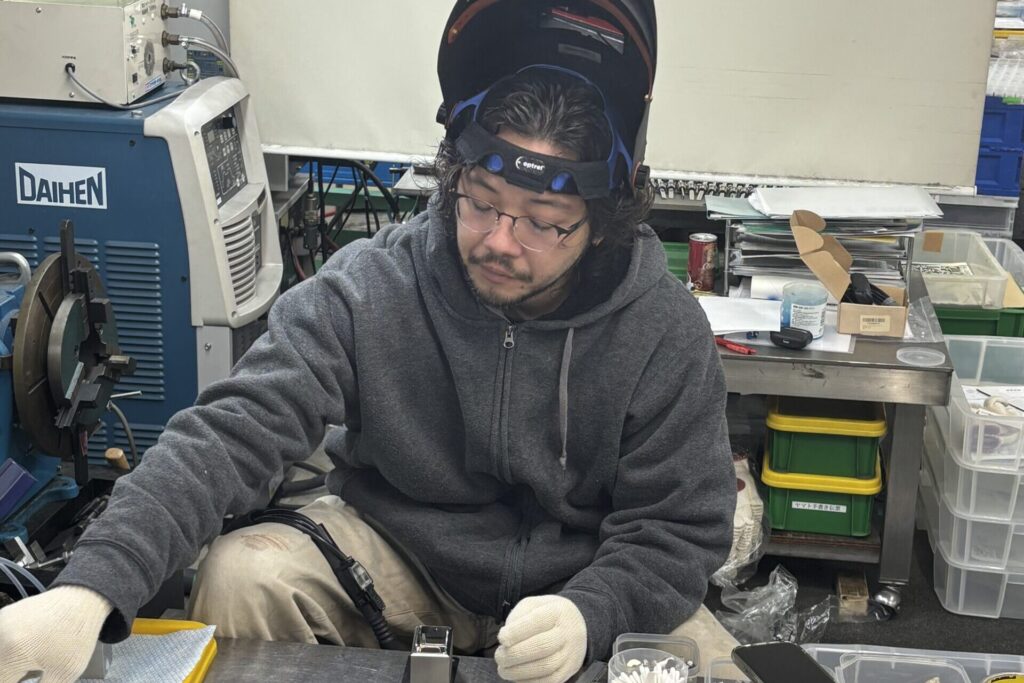 入社から1年半、溶接の技術を日々磨く杉野さん。テレアポの仕事を5年ほど経験しましたが、「将来を考えて、自分のためになる仕事を」と手に職をつけることを決意しました